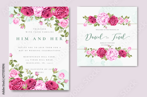 beautiful wedding invitation card with elegant floral and leaves template