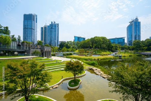 Beautiful Wetland Park and urban skyline in Chongqing, China