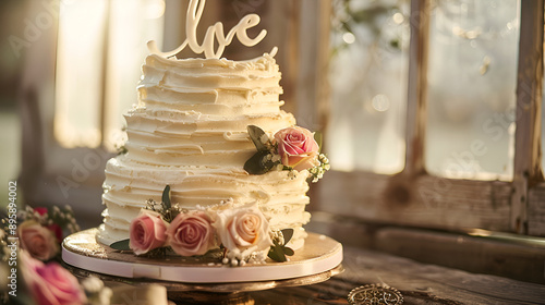 Beautiful white and colored wedding cake,A bride and a groom is cutting their wedding cake, front view of beautiful modern white wedding cake decorated with fresh pink roses with copy space, Party