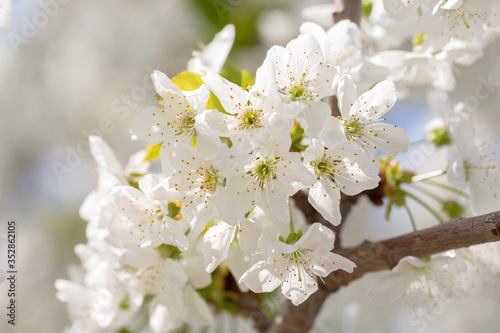 Beautiful white cherry or cherry blossom