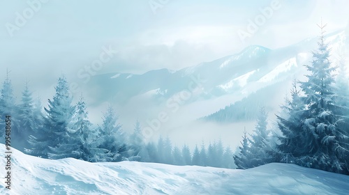 Beautiful winter landscape with snow covered trees and blue sky with clouds