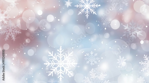 Beautiful winter scene with delicate snowflakes and ice crystals on a light blue bokeh background, perfect for Christmas and seasonal designs, holiday cards, and winter-themed marketing materials.