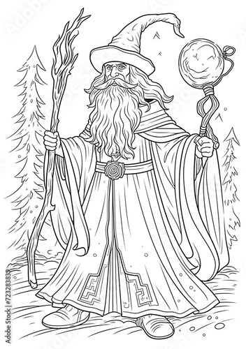 Beautiful Wizard Coloring Page, Perfect Design For your Project and Creations, Ai Generative