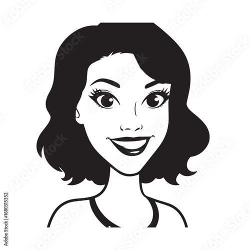 Beautiful Woman Black and White Vector Image Illustration Fashion Girl Portrait Line Art Drawing