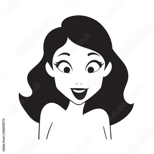 Beautiful Woman Black and White Vector Image Illustration Fashion Girl Portrait Line Art Drawing