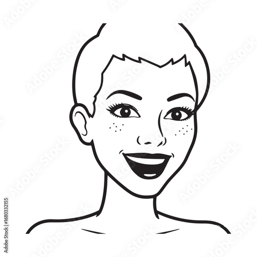 Beautiful Woman Black and White Vector Image Illustration Fashion Girl Portrait Line Art Drawing