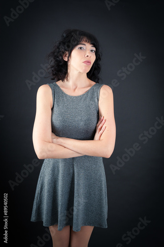 Beautiful woman doing different expressions in different sets of clothes: arms crossed