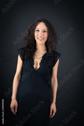 Beautiful woman doing different expressions in different sets of clothes: smile