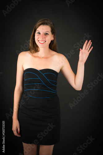Beautiful woman doing different expressions in different sets of clothes: wave