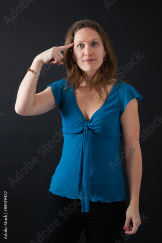 Beautiful woman doing different expressions in different sets of clothes: you are crazy