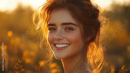 Beautiful woman face portrait healthy skin and beauty hairstyle happy smile.