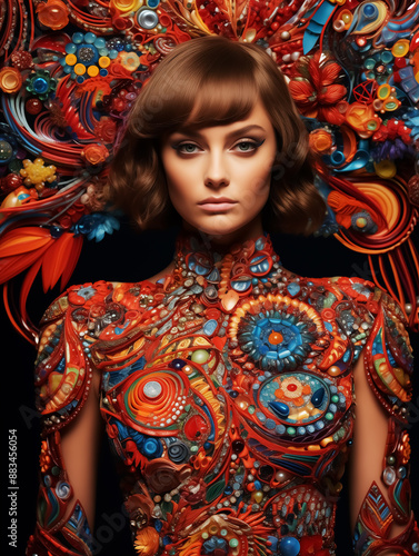 beautiful woman fashion model wearing dress made of soutache, supermodel portrait. Design for Wall Art, Poster Print, Wallpaper & Background