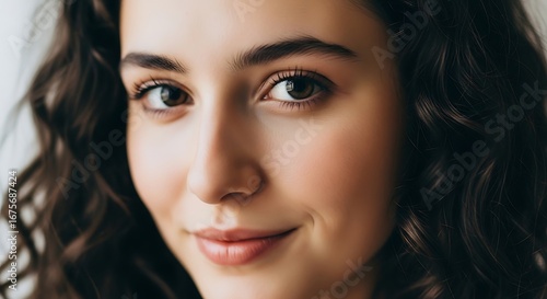 Beautiful Woman with Curly Hair Smiling Portrait.