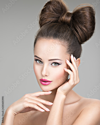 Beautiful woman with stylish bow hairstyle.