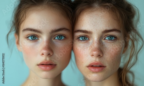 Beautiful womans face, split between youth and old age, represented in a before-and-after visual concept, Generative AI