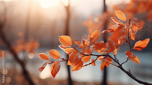 Beautiful yellow red and orange leaves in an autumn park on a br