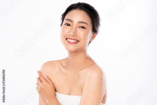 Beautiful Young Asian Woman with Clean Fresh Skin. Face care, Facial treatment, Cosmetology, beauty and healthy skin and cosmetic concept, woman beauty skin isolated on white background