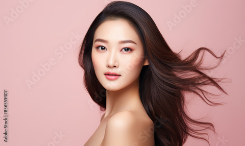 Beautiful young asian woman with clean fresh skin on white background, Face care, Facial treatment, Cosmetology, beauty and spa