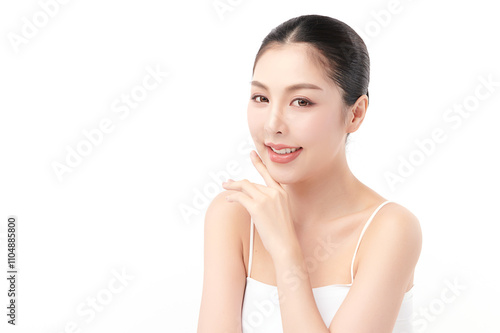 Beautiful young asian woman with clean fresh skin on white background, Face care, Facial treatment, Cosmetology, beauty and spa, Asian women portrait.