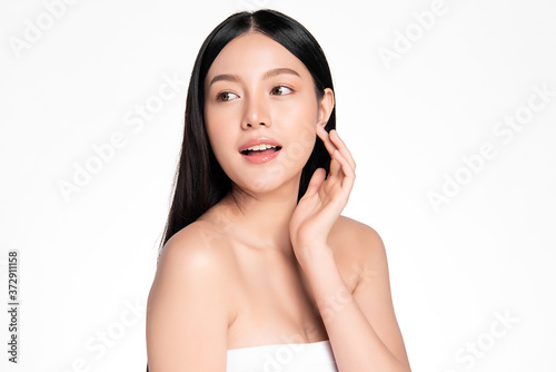 Beautiful Young asian Woman with Clean Fresh Skin, on white background, Face care, Facial treatment, Cosmetology, beauty and spa, Asian women portrait