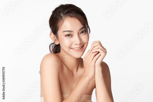 Beautiful young asian woman with clean fresh skin on white background, Face care, Facial treatment, Cosmetology, beauty and spa, Asian women portrait