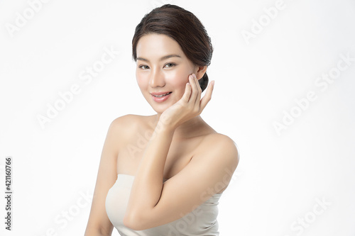 Beautiful young asian woman with clean fresh skin on white background, Face care, Facial treatment, Cosmetology, beauty and spa, Asian women portrait