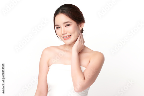 Beautiful young asian woman with clean fresh skin on white background, Face care, Facial treatment, Cosmetology, beauty and spa, Asian women portrait.