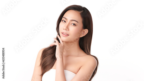 Beautiful young asian woman with clean fresh skin on white background, Face care, Facial treatment, Cosmetology, beauty and spa, Asian women portrait.