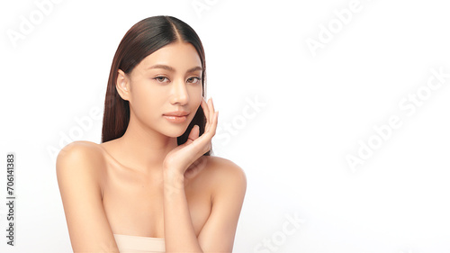Beautiful young asian woman with clean fresh skin on white background, Face care, Facial treatment, Cosmetology, beauty and spa, Asian women portrait.