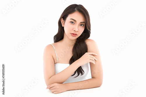 Beautiful young asian woman with clean fresh skin on white background, Face care, Facial treatment, Cosmetology, beauty and spa, Asian women portrait.
