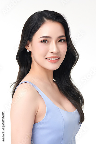 Beautiful young asian woman with clean fresh skin on white background, Face care, Facial treatment, Cosmetology, beauty and spa, Asian women portrait.