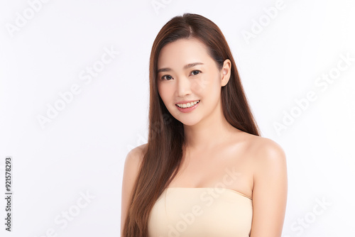 Beautiful young asian woman with clean fresh skin on white background, Face care, Facial treatment, Cosmetology, beauty and spa, Asian women portrait.