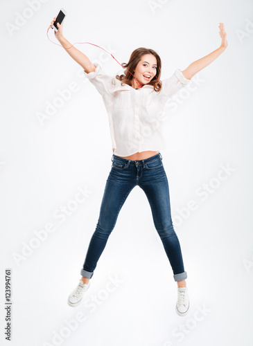 Beautiful young girl listening music with earphones and smartphone