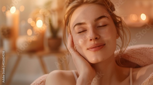 Beautiful young woman in spa salon lying on massage table with closed eyes