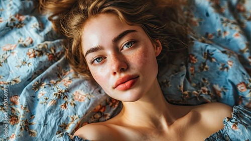 Beautiful Young Woman Lying On Bed, Background HD For Designer