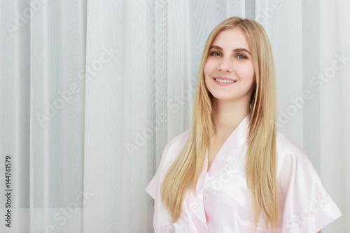 Beautiful Young Woman With Sexy Fit Body stand Curtains