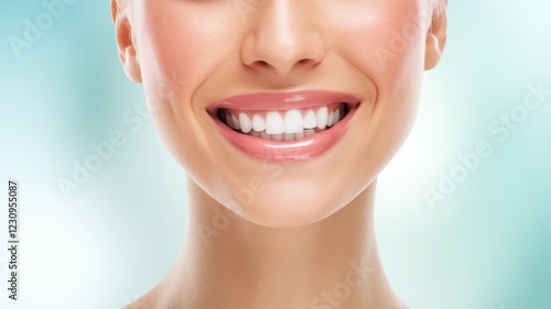 Beautiful young woman with smooth skin and a bright smile, radiating confidence and joy against a soft, blurred background.