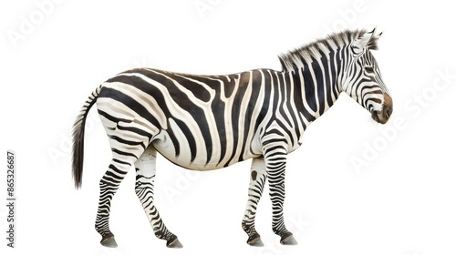 Beautiful zebra isolated on a clean white backdrop, its bold stripes creating a captivating contrast against the serene background