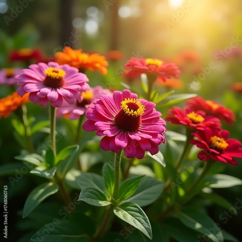 Beautiful zinnia flowers blooming in garden summer floral display colorful petals nature photography close up view