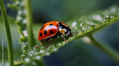 beautifull lady bug on leaves close up photo