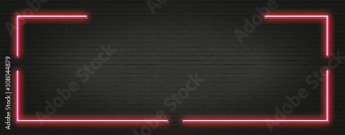Beautifully arranged black brick wall background, Red neon light