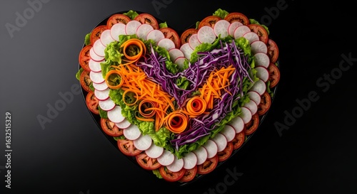 Beautifully Arranged Heart Shaped Salad Packed With Fresh Colorful Vegetables Perfect For Healthy Eating Celebrations And Special Occasions