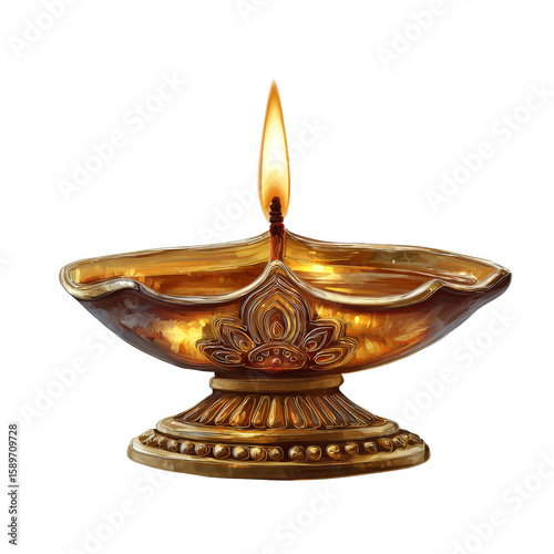 Beautifully Crafted Oil Lamp Illuminating Peaceful Atmosphere for Diwali Celebration