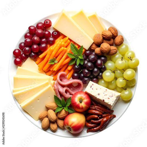 beautifully crafted plate with assorted cheeses, meats, fruits and nuts, ideal for elegant gatherings and enhancing dining experiences