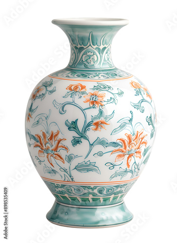 Beautifully Decorated Vase with Colorful Floral Patterns in Blue and Orange