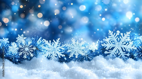 Beautifully detailed Festive Snowflakes and Blue Decorations with a Winter Holiday Atmosphere