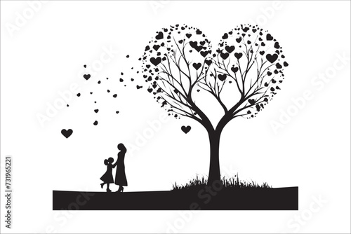 Beautifully Love tree silhouette, love tree silhouette Valentine Silhouette and love vector.
