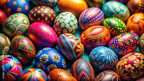 Beautifully painted Easter eggs in vibrant colors, Easter, eggs, holiday, traditional, decorations, vibrant, colors