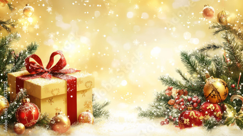 Beautifully Wrapped Christmas Gift Box.Festive Christmas Gift Boxes Background with Holiday Sparkle.