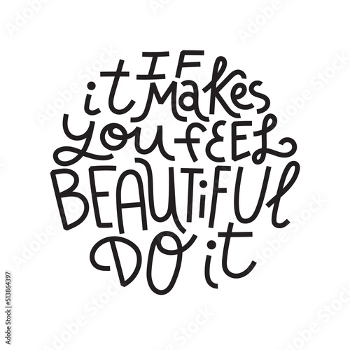 Beauty and skincare lettering quote. If it makes you feel beautiful, do it. Simple, minimalist black monoline on white background